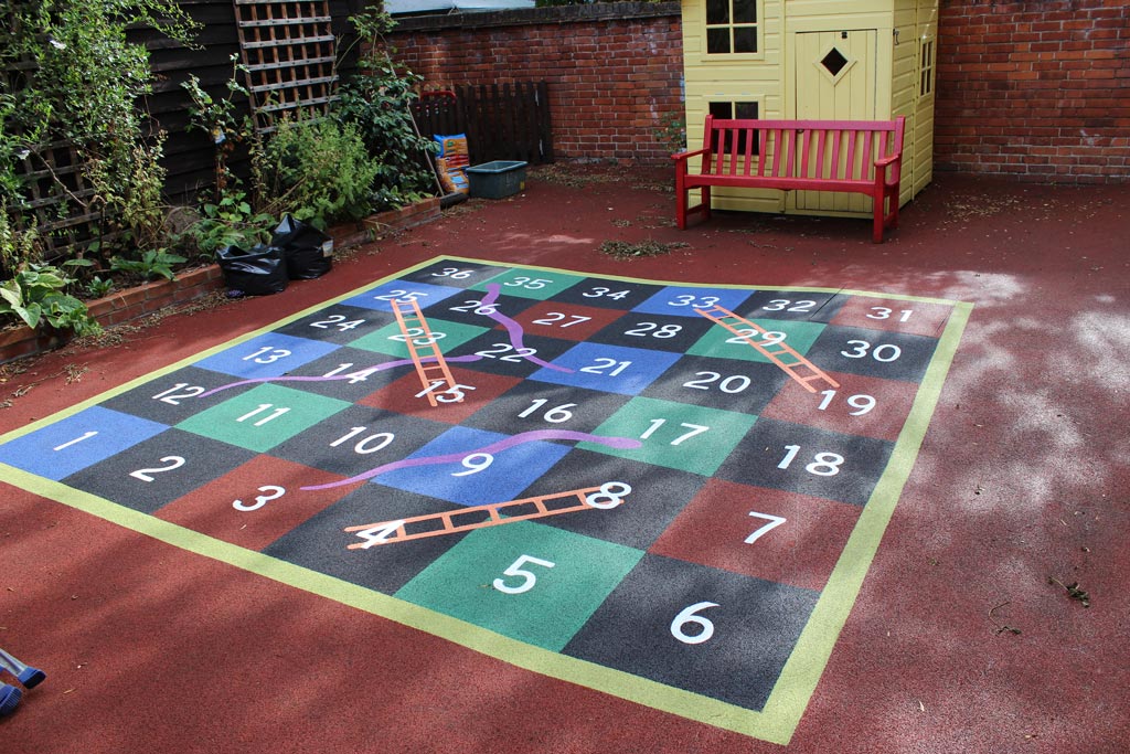 School playgroundThis alphabet snake was painted using acrylic paint made for playgrounds.