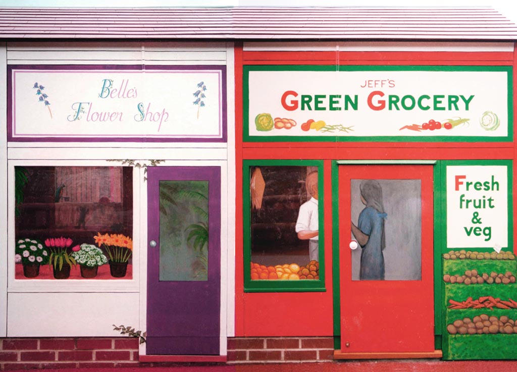 Nursery playhouseFlower shop and grocery.