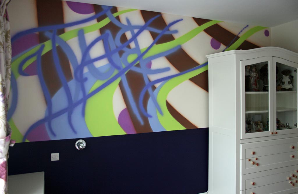 Graffiti muralA splash of colour in this teenagers's bedroom