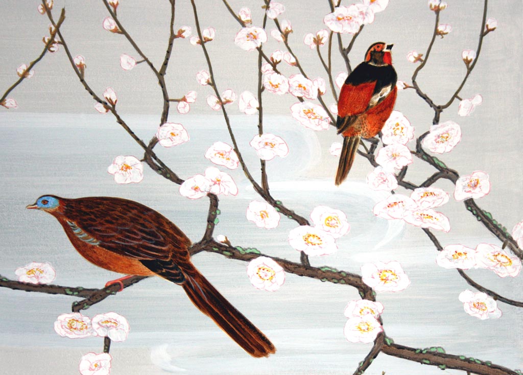 Japanese styled muralThe background colours were washed in horizontally and the edges were feathered.