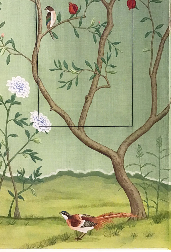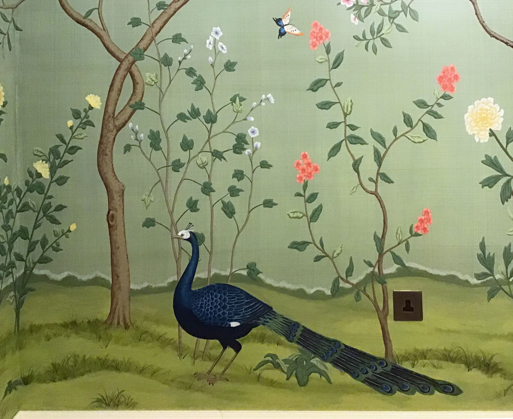 de Gournay styled mural in dining room with no windowsDetail