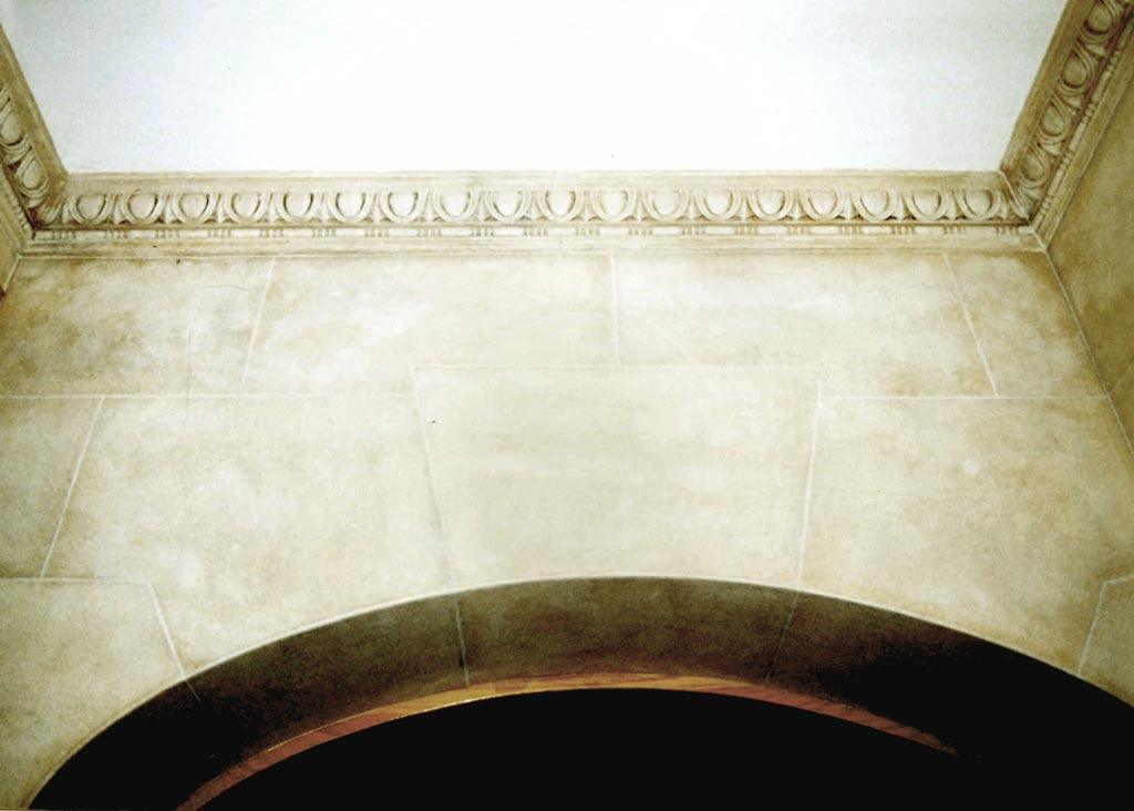 MarbleingThe architrave has been marbleized and it has been extended with a trompe loeil pediment to match.